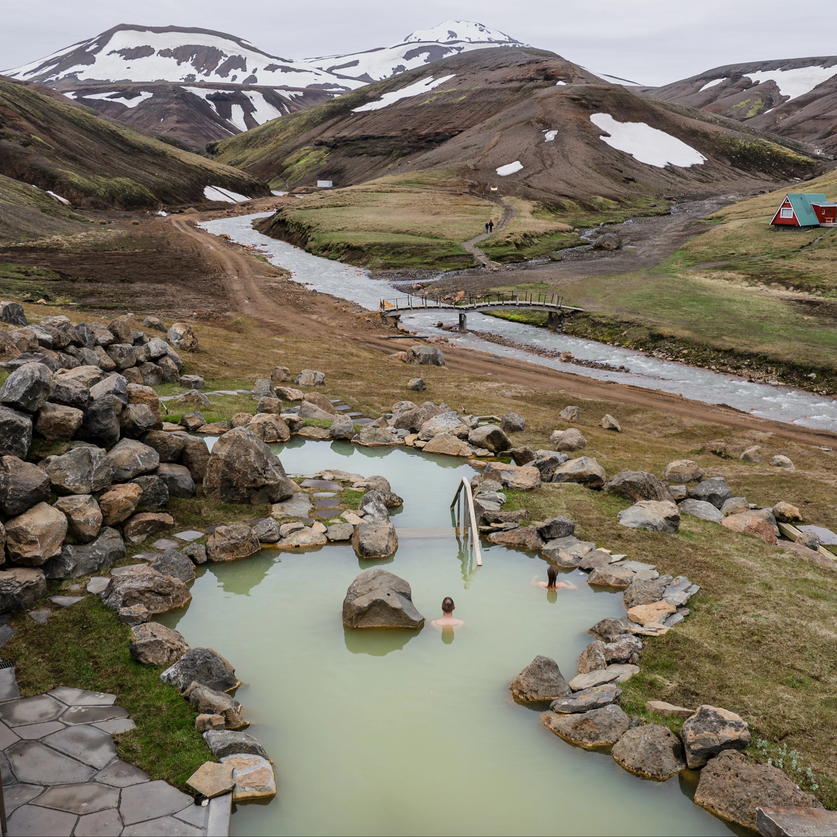 Whether you want to recharge for your next adventure or relax after a busy day, the Highland Baths in Kerlingarfjöll are the perfect destination. Located in the heart of the Ásgarður valley, along the banks of the Ásgarðsá river, these baths provide stunning views of the surrounding mountain range. Dive in, take pleasure in the earth's natural heat, and let the hot springs of the highlands rejuvenate both body and soul.